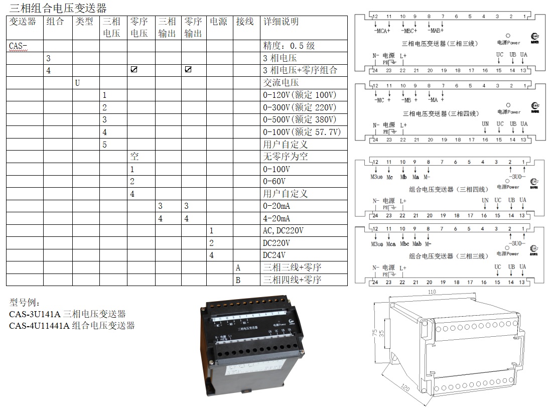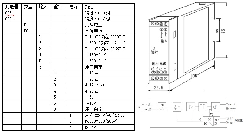 CAS-U141交流電壓變送器是將被測交流電壓信號轉(zhuǎn)換成按線性比例輸出直流電流并隔離的設(shè)備,配以相應(yīng)的指示儀表或裝置是電力系統(tǒng)、遠動裝置、自動化控制系統(tǒng)等必需的模擬量采集模塊。