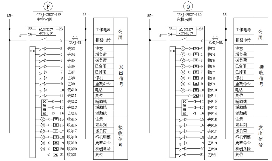 CAKJ-ZHXT-16F/Q 發(fā)電機指揮信號裝置是用于主控室與汽機房之間彼此傳送命令和機組運行狀況的設備。一套完整的指揮系統,應在主控室的發(fā)電機控制盤上和汽機控制盤上各裝設一臺相應發(fā)送和接受命令的指揮信號裝置。