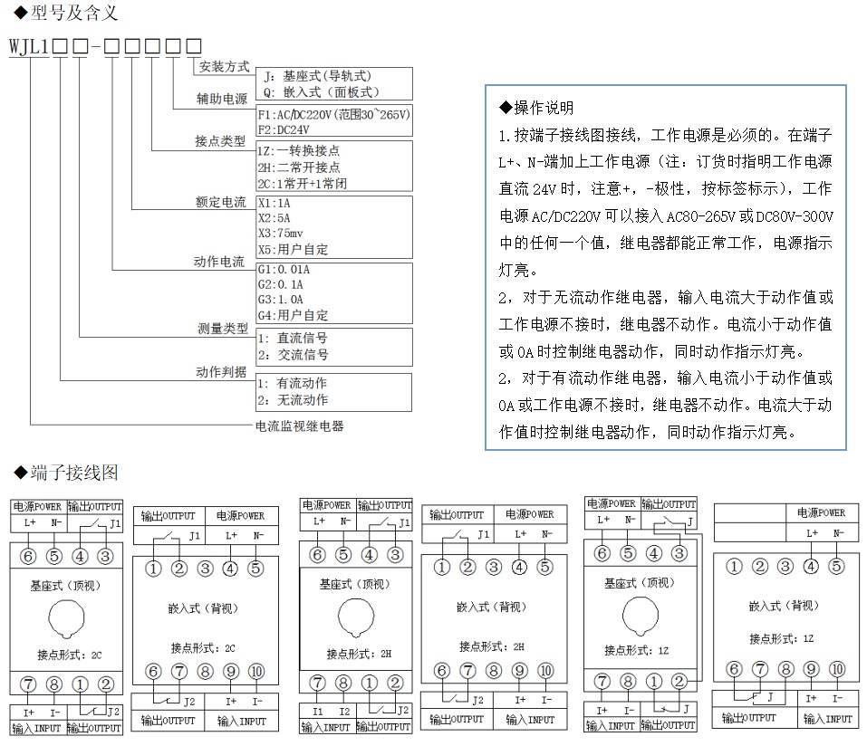WJL100系列電流監(jiān)視繼電器,適用于交直流電流回路,監(jiān)視電流有或無。對小電流信號能做出準(zhǔn)確判斷,對額定電流可以長期通入,繼電器檢測速度快,動作可靠,是運(yùn)行設(shè)備簡單可靠的狀態(tài)監(jiān)視繼電器。