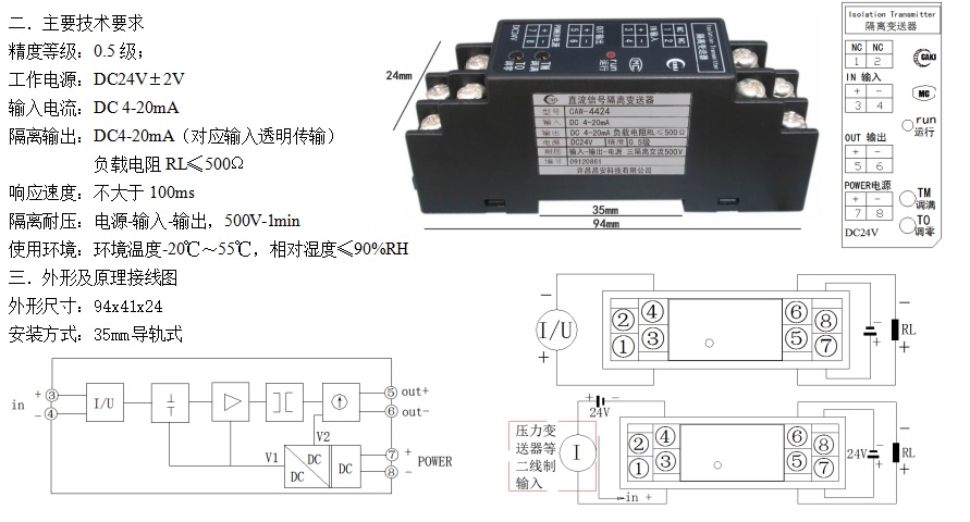 規(guī)范:4-20mA轉(zhuǎn)4-20mA 電源DC24V