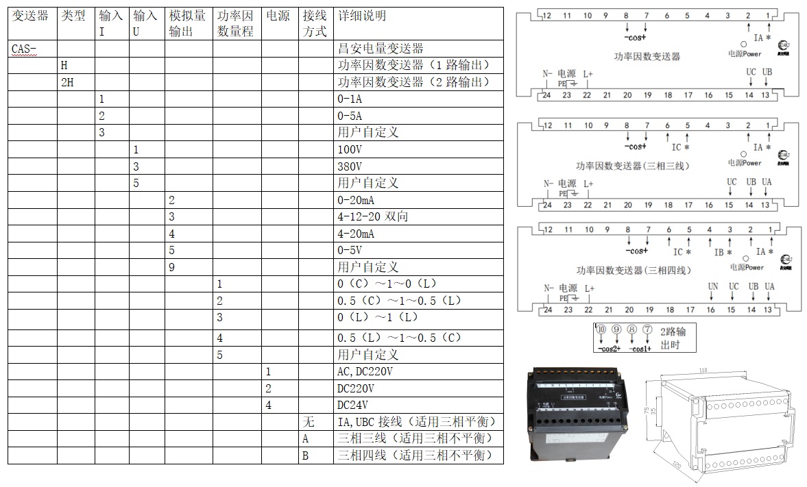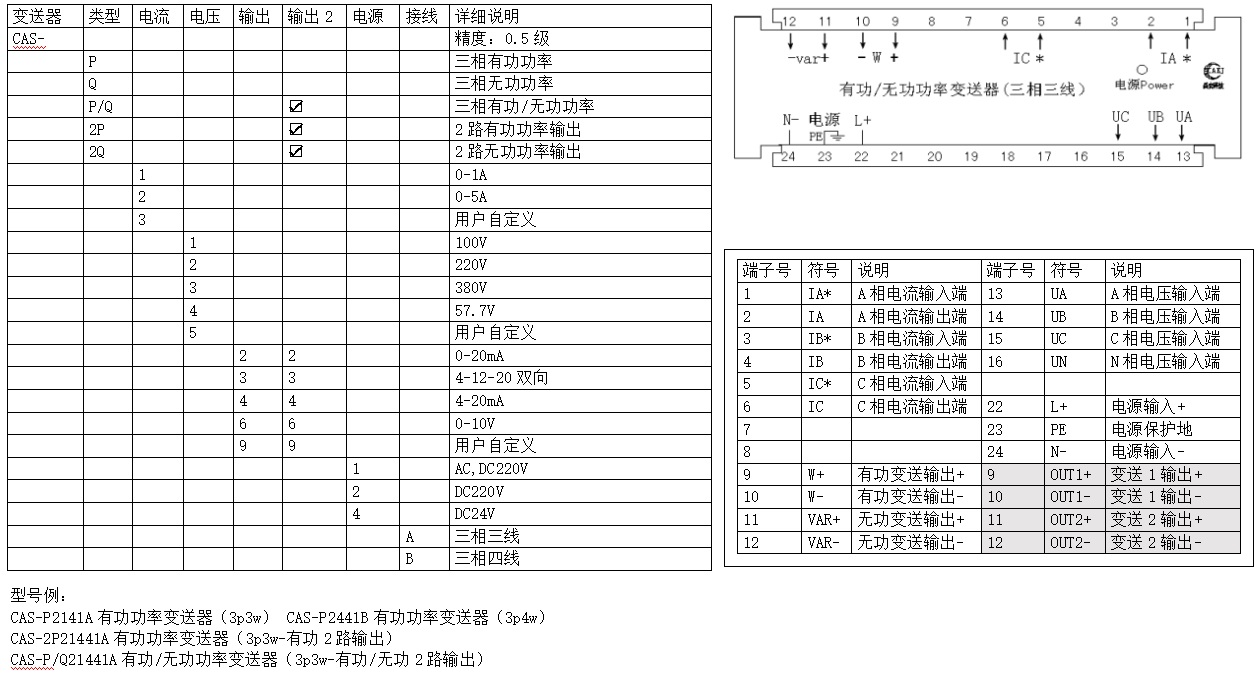 CAS系列功率變送器是將被測電流、電壓信號(hào),通過內(nèi)部CPU計(jì)算出有功功率、無功功率、功率因數(shù)等參量并輸出4-20mA等模擬量的設(shè)備。