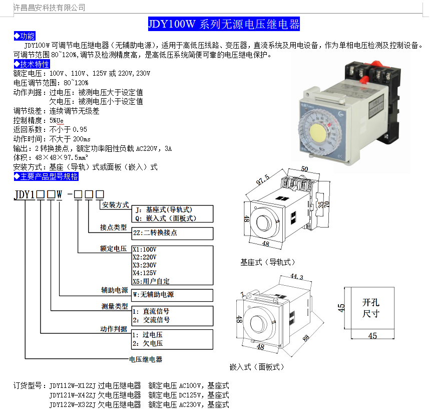 JDY100W可調(diào)節(jié)電壓繼電器(無輔助電源),適用于高低壓線路、變壓器,直流系統(tǒng)及用電設(shè)備,作為單相電壓檢測(cè)及控制設(shè)備。可調(diào)節(jié)范圍80~120%,調(diào)節(jié)及檢測(cè)精度高,是高低壓系統(tǒng)簡(jiǎn)便可靠的電壓繼電保護(hù)。