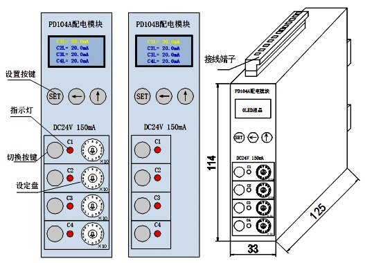 PD104系列直流配電控保模塊是DC24V直流配電系統(tǒng)控制保護(hù)模塊,以下簡稱模塊,該模塊具備1路輸